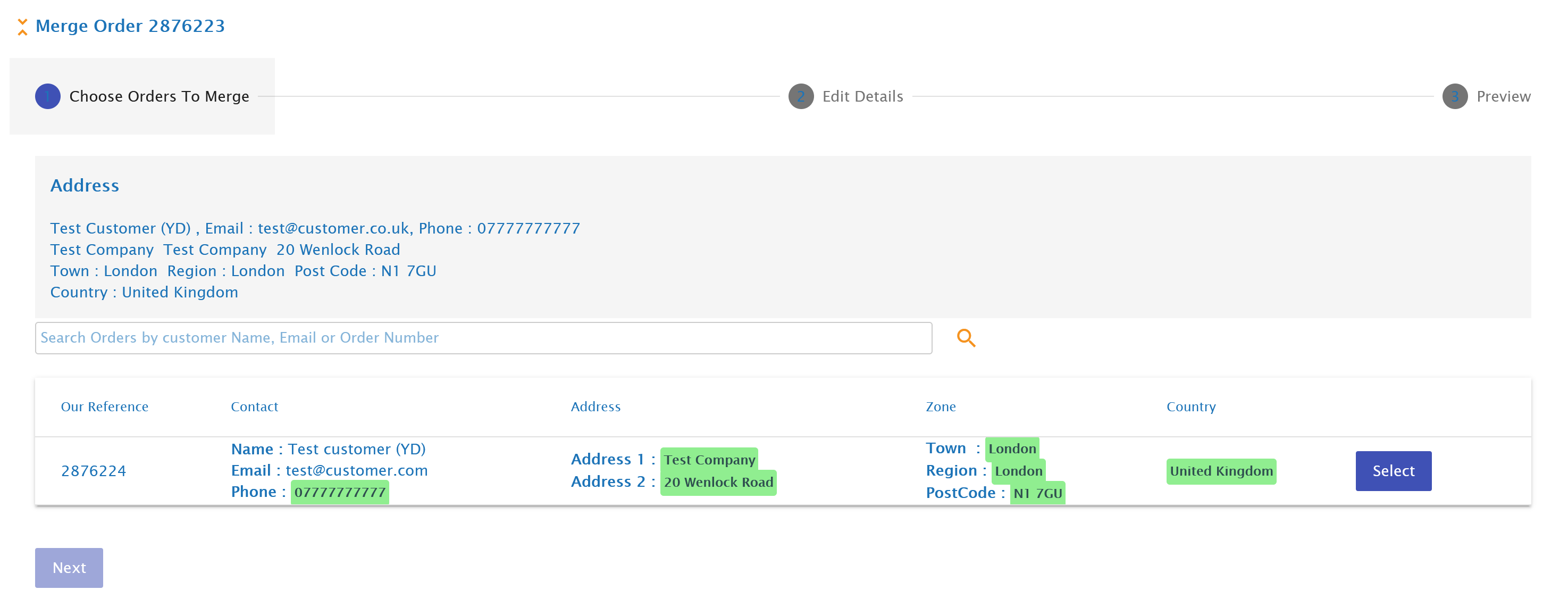 If you intentionally need to merge orders where the addresses do not currently match, you will first need to edit one of the addresses so they are the same.